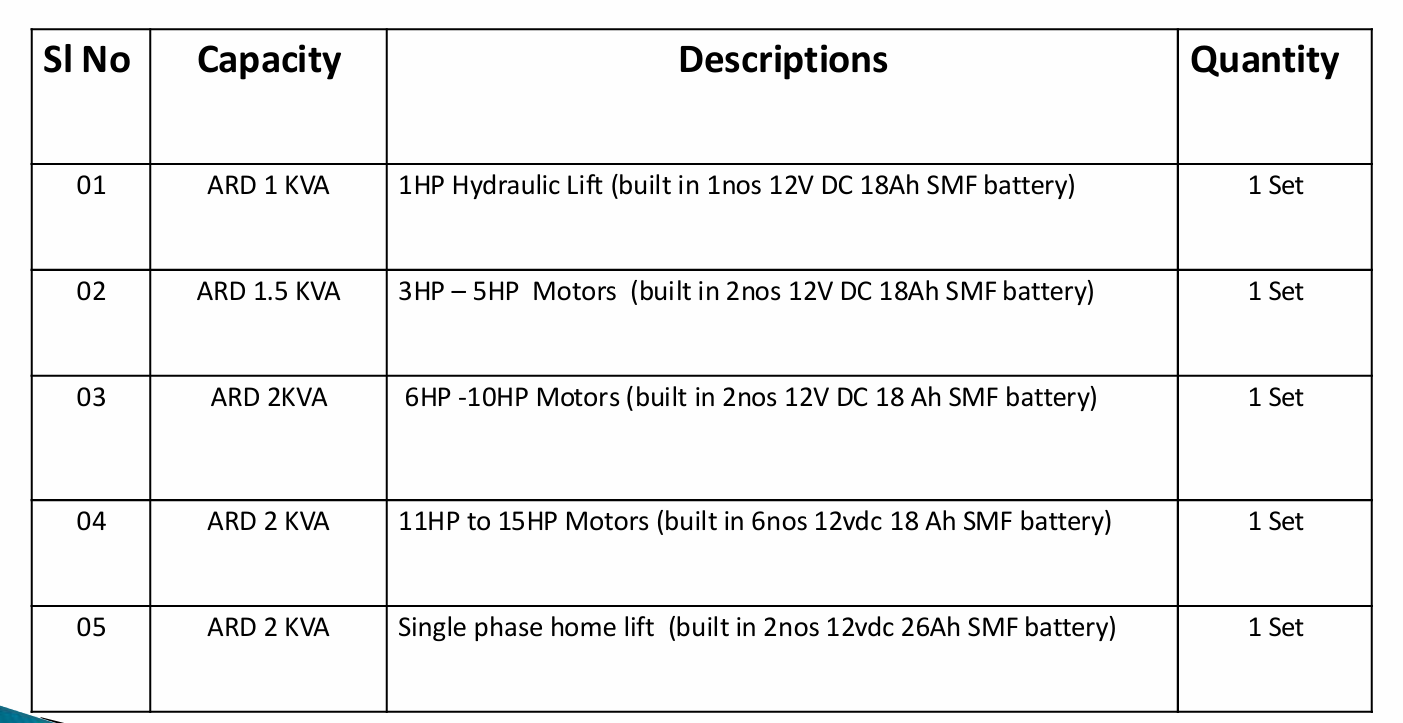 ▪ Safest power back up solution for Lift Transport.